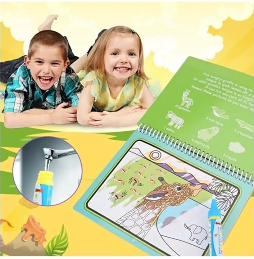 Magic Water Sihirli Kalem ve Çocuk Boyama Kitabı – Sadece su ile boyayın, renkler sihirli şekilde ortaya çıksın! Kimyasal içermez, kirletmez, tekrar tekrar kullanılabilir. Çocukların yaratıcılığını güvenle geliştiren, eğlenceli ve temiz bir boyama deneyimi sunar.
