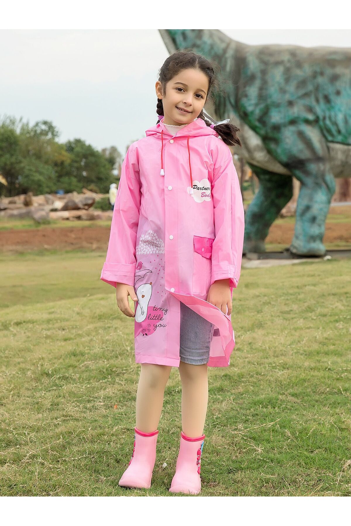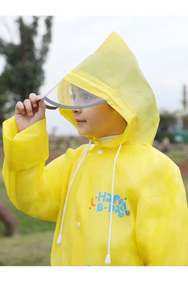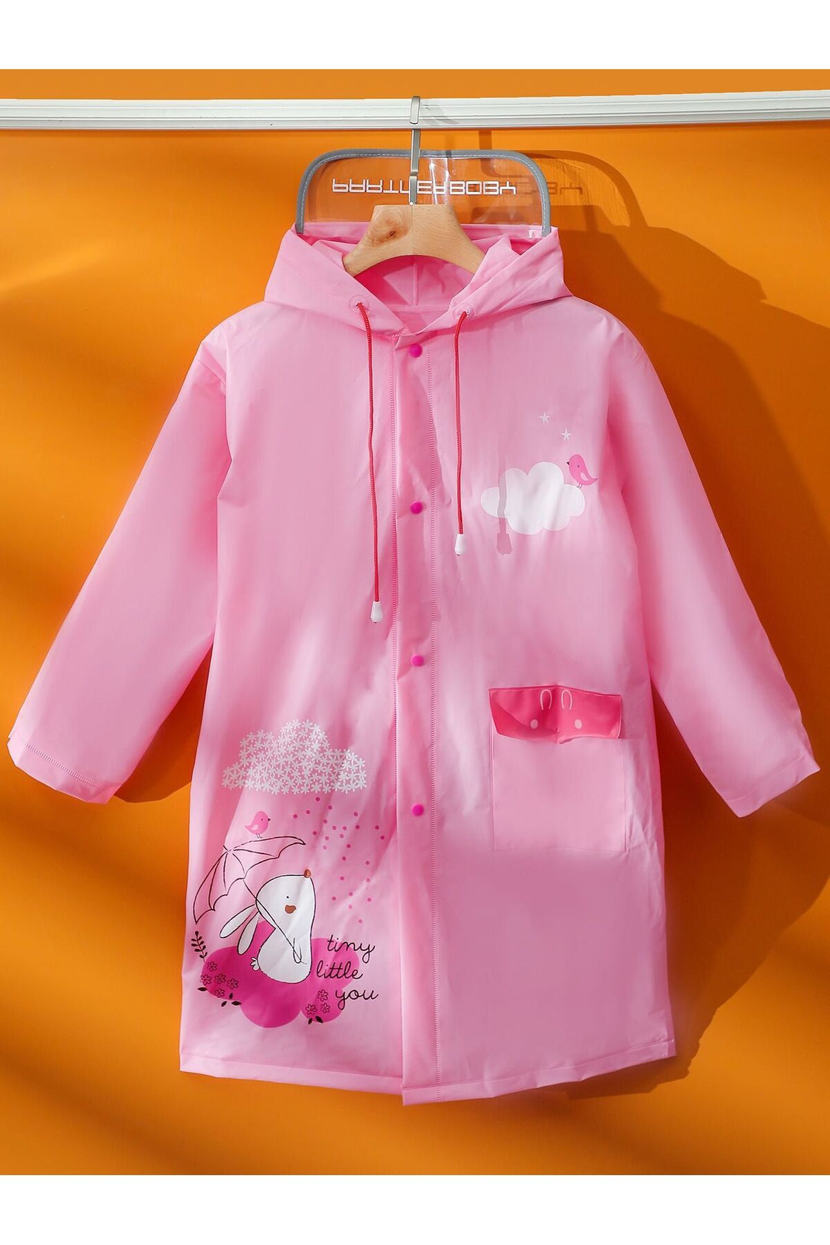Çocuk Yağmurluk – Sırt Çantası Korumalı, Eva Kumaş, Kapüşonlu, Desenli, Cepsiz, Çıtçıtlı
