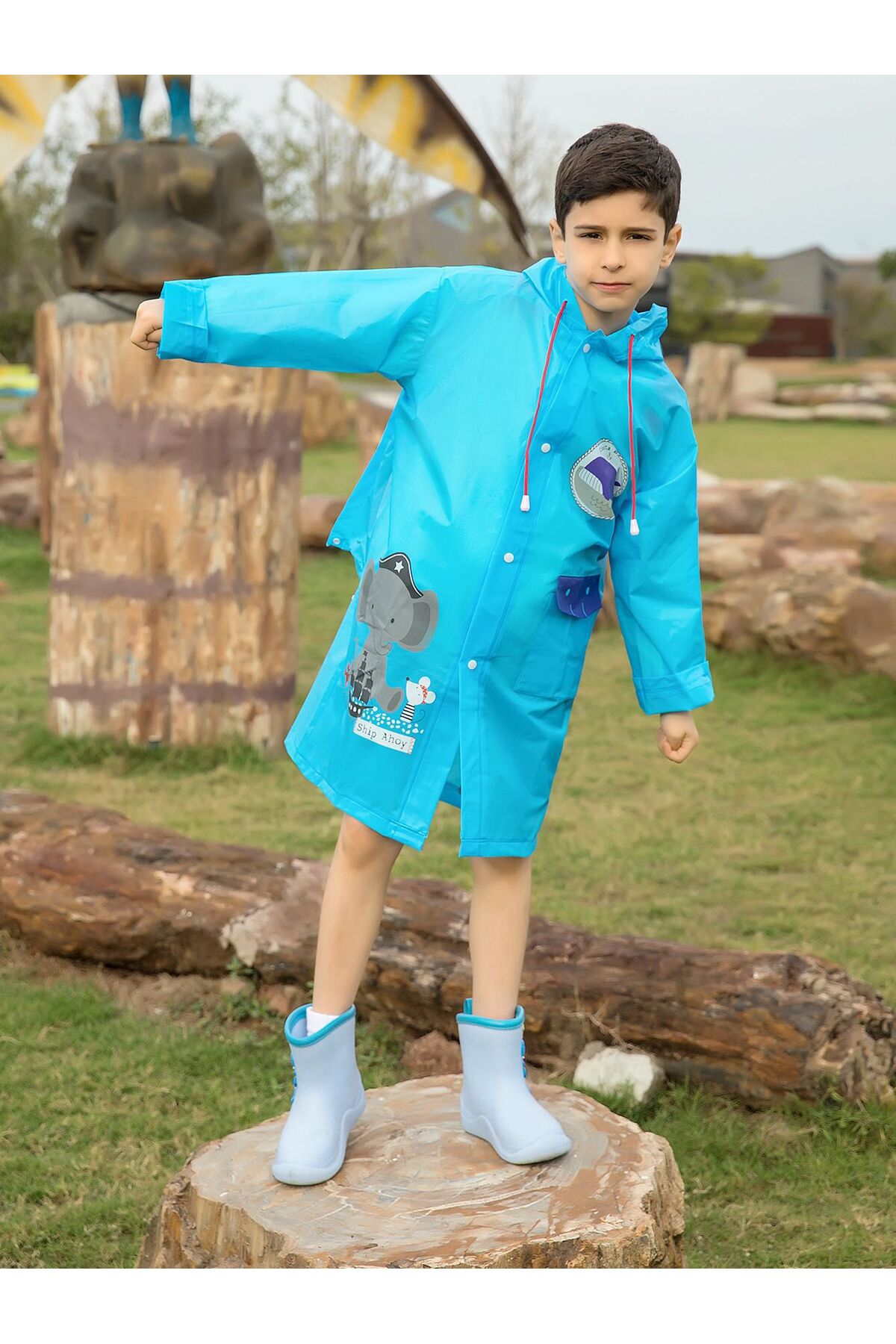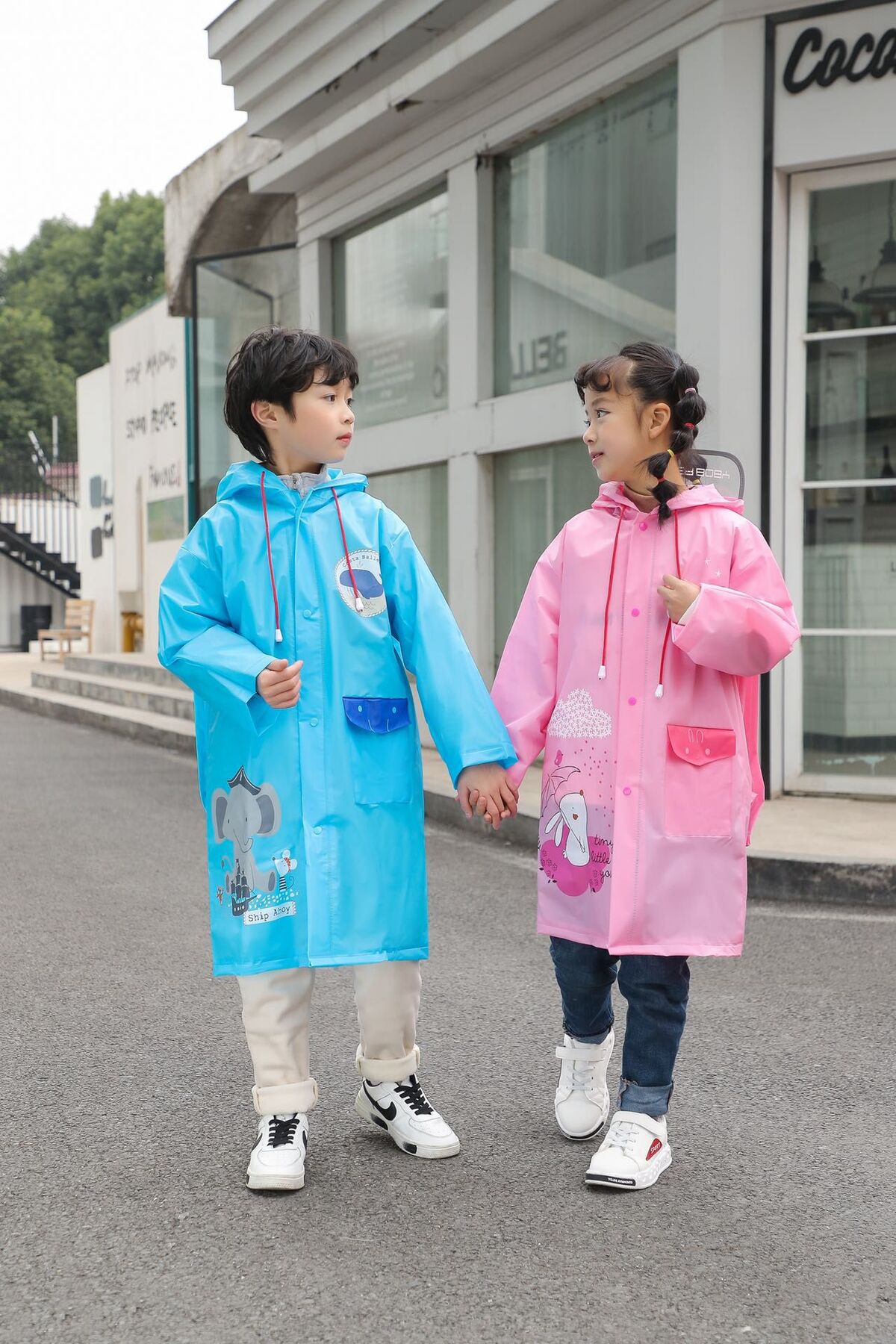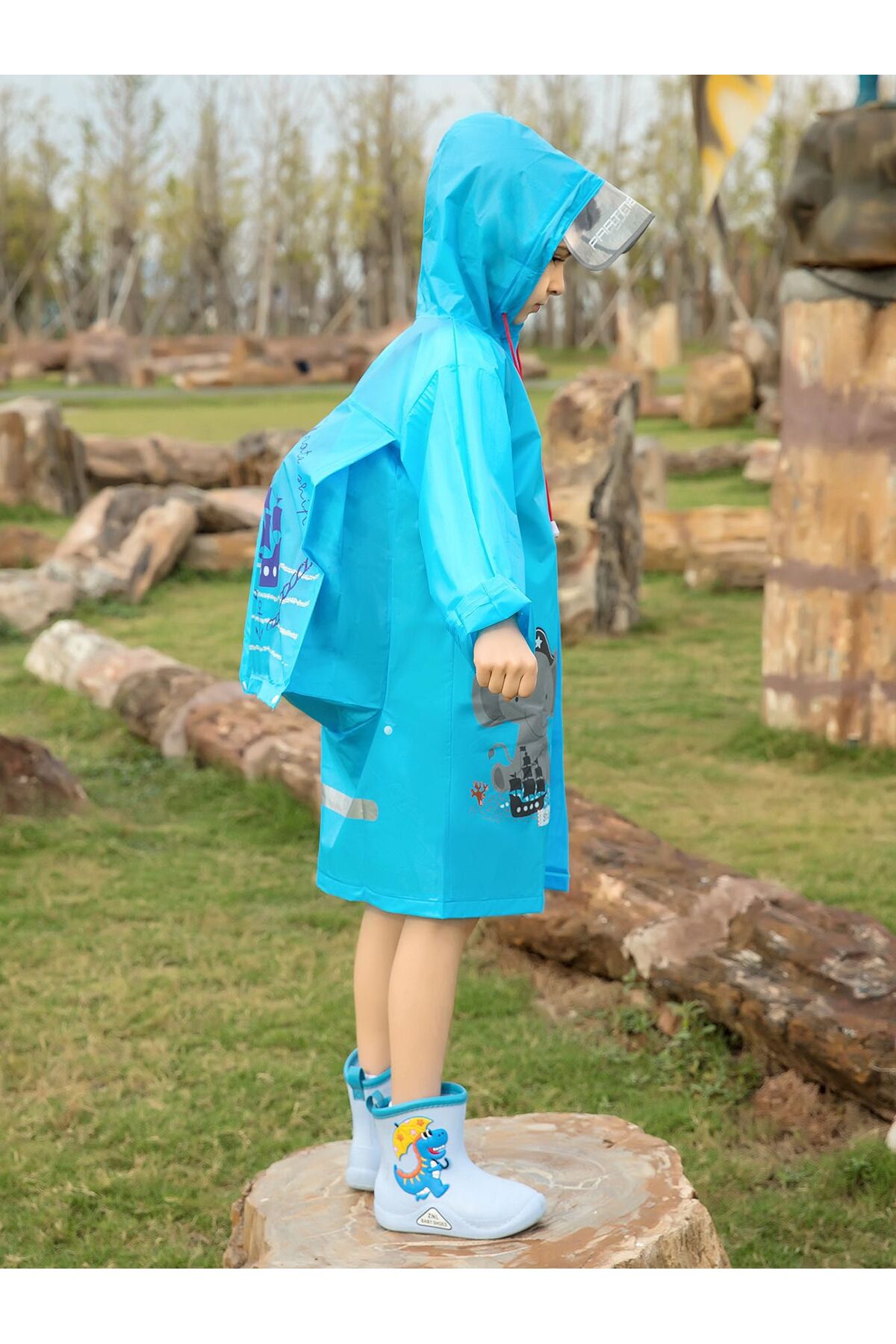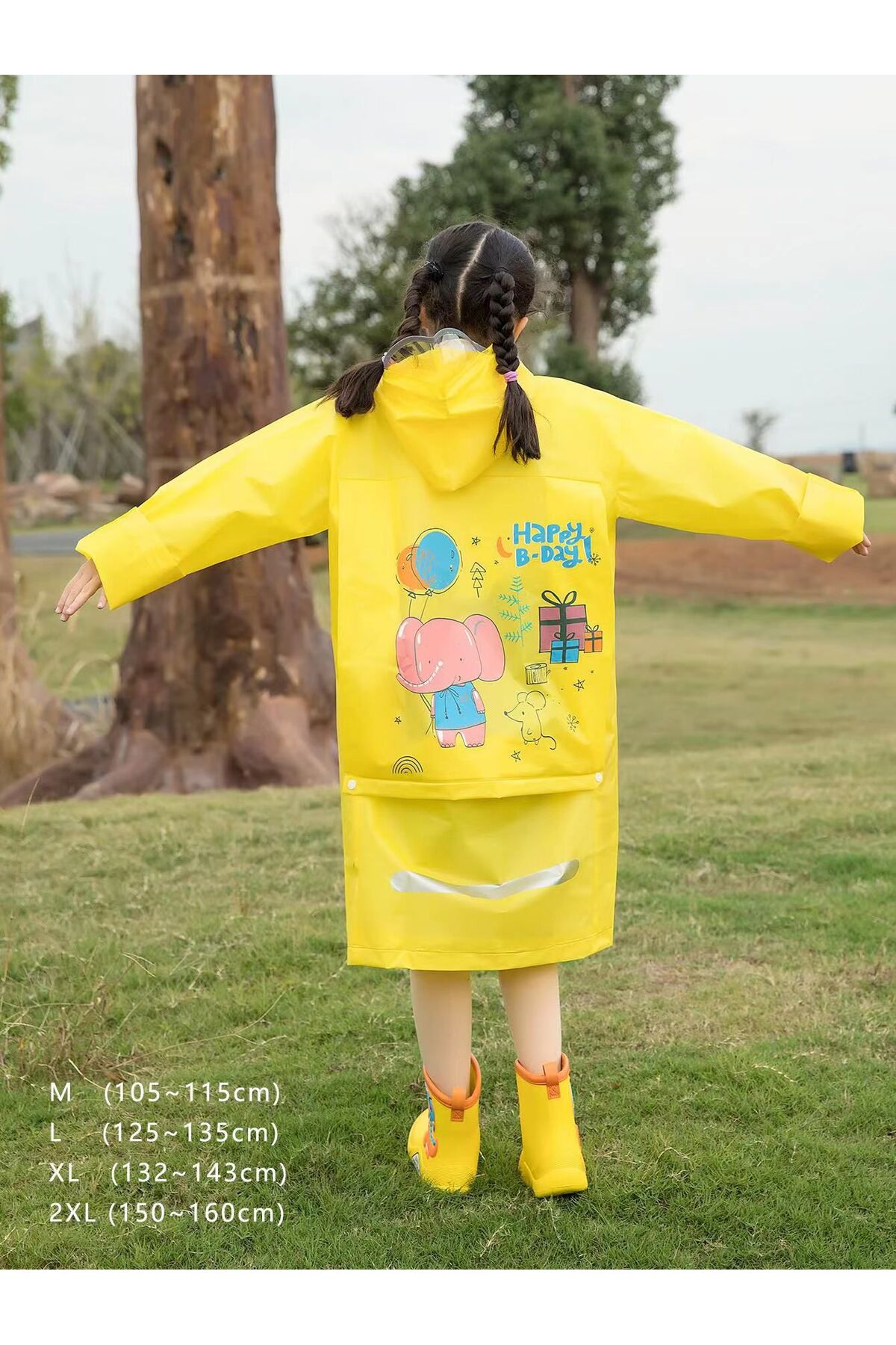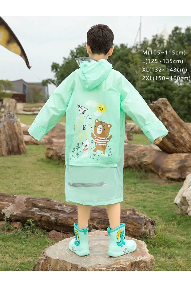 Su geçirmez EVA kumaş, kapüşonlu ve sırt çanta korumalı tasarım; çocuklar için hem sevimli hem de güvenli yağmur çözümü.